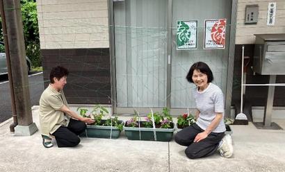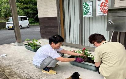 7月18日【祖式・大代支部】高山店前にプランターに花を植える