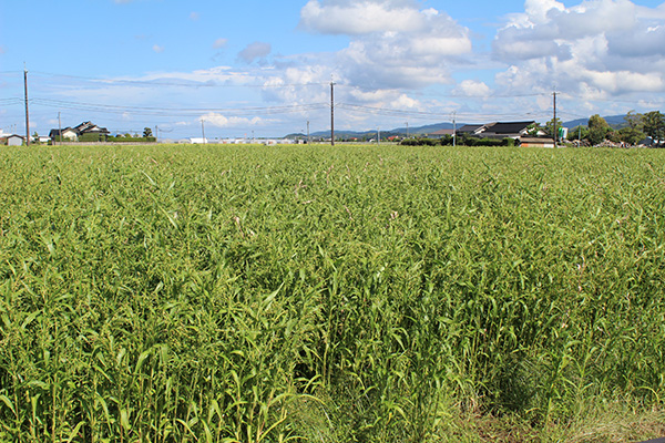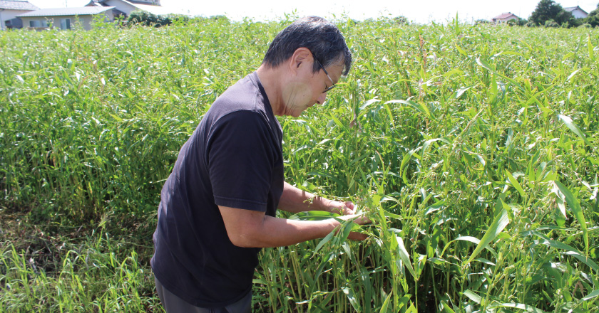 草丈が30センチ程度になるまでに1カ月半程度かかります。そこからは成長が早くなり、8月になる頃には1.5〜2メートルほどに。この期間の成長には水が大量に必要になります。「今年は空梅雨だったのでパイプラインで水を入れていました。8月になっても雨が少なくダムの取水制限が始まり、心配事の多い夏でしたね。なんとか乗り越えられましたが・・・」と森脇さんは振り返ります。