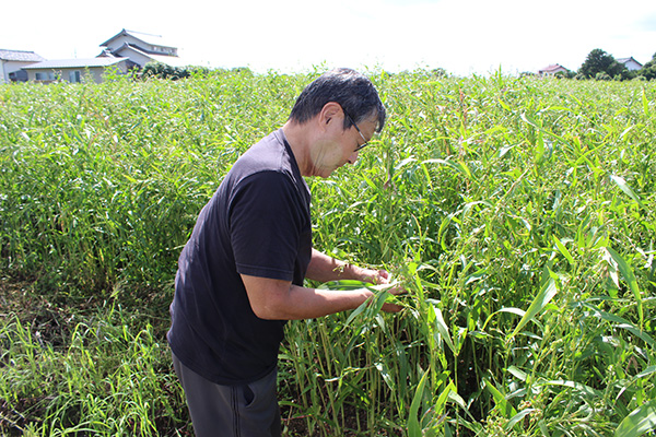 草丈が30センチ程度になるまでに1カ月半程度かかります。そこからは成長が早くなり、8月になる頃には1.5〜2メートルほどに。この期間の成長には水が大量に必要になります。「今年は空梅雨だったのでパイプラインで水を入れていました。8月になっても雨が少なくダムの取水制限が始まり、心配事の多い夏でしたね。なんとか乗り越えられましたが・・・」と森脇さんは振り返ります。